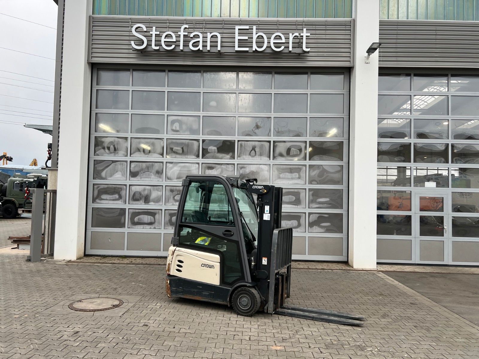 Crown SCT 6020-1.3 electric forklift, year of manufacture: 2016, hours: only 2.090h, previous owner: German Armed Forces, rated load capacity: 1.300kg, lifting height: 4.300mm, Tine length: 800mm, Fork extension 1.200 mm, sideshift, triplex mast with free lift, full cabin with heating, incl. charger, STVZO lighting, very good condition, ready for immediate use!